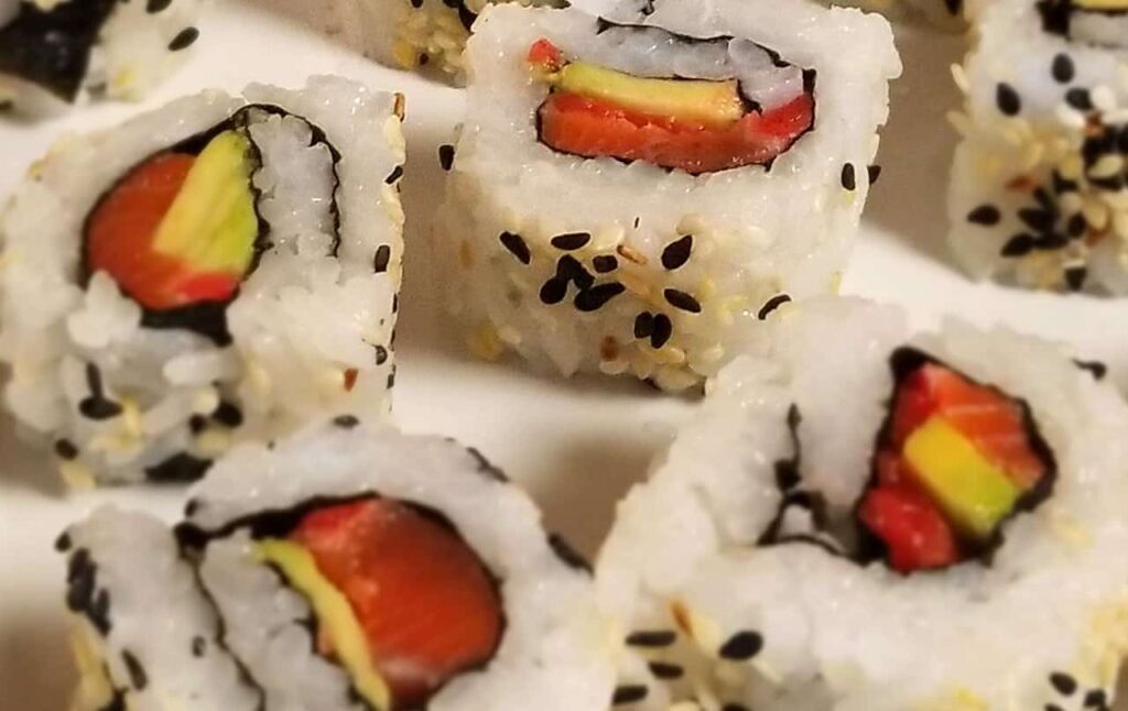 Salmon Avocado Uramaki with Chili Aioli and Wasabi Soy Vinaigrette Sushi Rolls are a favorite among our guests…