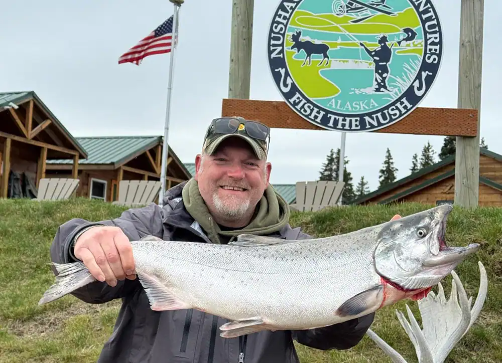 Meanwhile, two of our guests had a spectacular fly-out adventure today. Before arriving, they worked with Pete to build a well-rounded Alaska itinerary. In addition to their days at the lodge, they added a guided fly-out lake trip and a saltwater fishing day on the Kenai Peninsula. Between the Nush, the lakes, and the ocean, they’re headed home with full coolers and even fuller photo rolls.