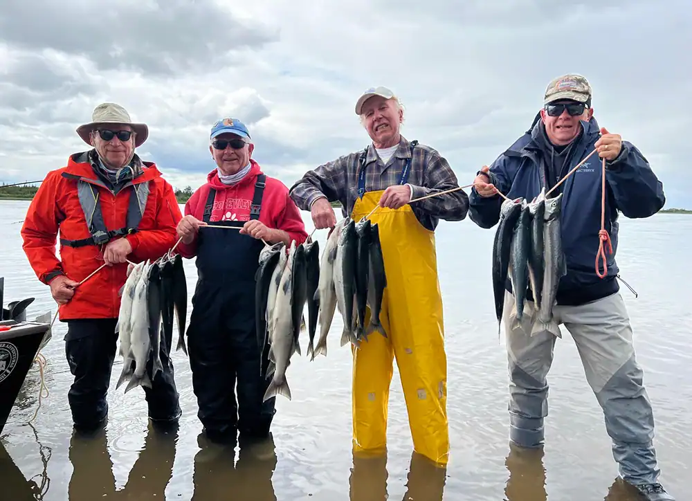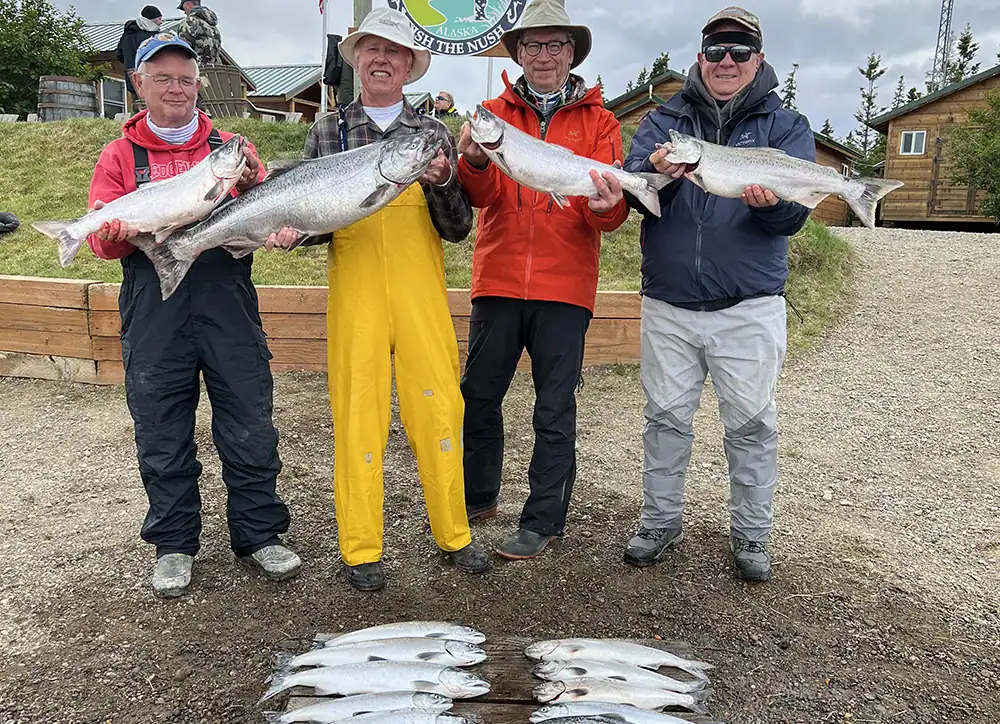 Each summer, we have the pleasure of welcoming a crew of four longtime friends—Russ, Jim, Reid, and Bill—who’ve made fishing at our lodge a cherished annual tradition. For nine straight seasons, they’ve returned to the Nushagak to fish, laugh, and celebrate the kind of camaraderie that the river delivers. And now with two more years already scheduled on the books, their annual trip streak is still going strong.