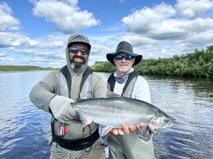 You may elect to go sockeye fishing and we will propose available dates accordingly. The last few years’ counts give credence to fishing regulators who boast about record red salmon returns throughout all of Bristol Bay. It’s certainly a good time to go sockeye fishing. We employ a universally implemented flossing technique to line sockeye in the mouth as sport fishermen. Our guides will help you dial in your moves. The trick is landing these airborne rangers as they are surprising bruisers for their size. The limit has been liberalized in season, lately, and their meat is a delicious option to fill your fish box. The sockeye abundance is another good reason to select the Nushagak River for where to fish salmon in Alaska.